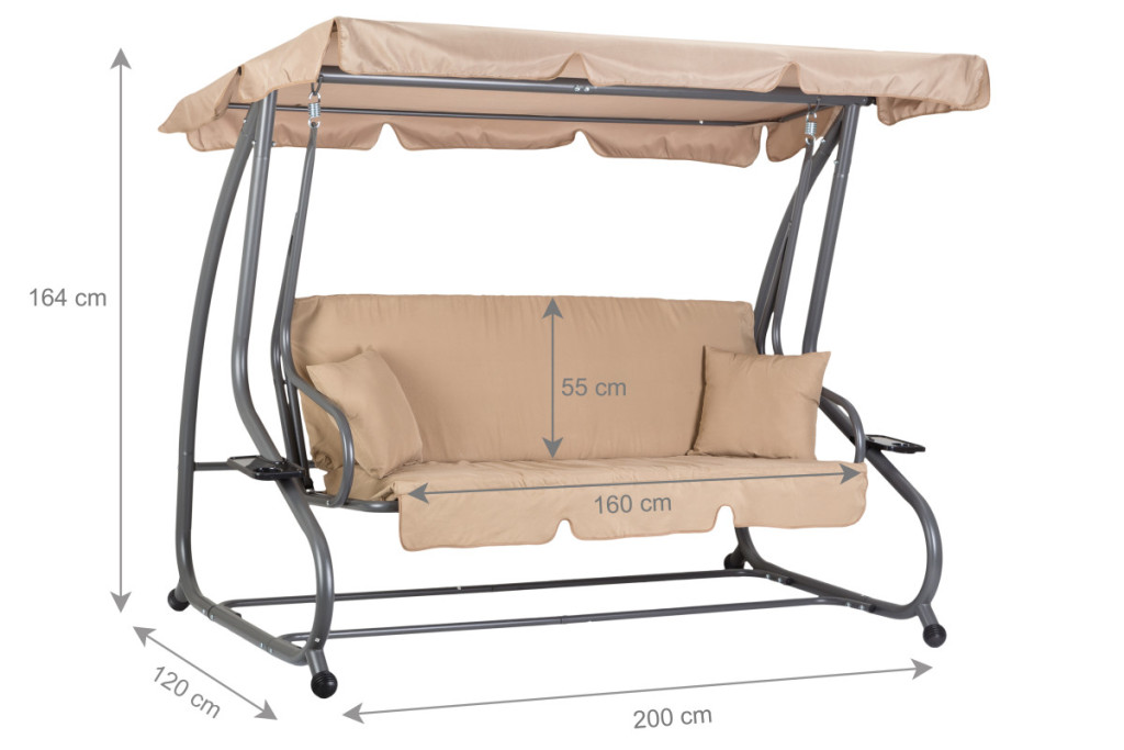 A kerti hintaszék nagy, állítható napellenzővel rendelkezik, amely megvéd a káros UV sugárzástól és kellemes árnyékot biztosít a forró napokon. A puha, 8 cm vastag matrac és a két mellékelt párna bármikor fokozza a pihenést. A hintát gyorsan fekvőágyakká alakíthatja, így tökéletesen igazíthatja igényeihez.