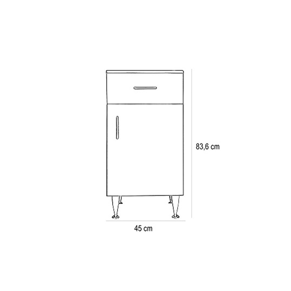 | Termékverzió | Bianca Plus 45 alacsony szekrény 1 ajtóval, 1 fiókkal, magasfényű fehér színben, jobbos |