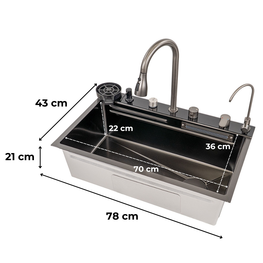 A Calandria multifunkciós rozsdamentes mosogató a modern konyhák igényeihez lett tervezve. A 78x43x22 cm-es méretének köszönhetően tökéletes választás kisebb és nagyobb konyhákba egyaránt. A 3 mm vastag, nano bevonatos 201 rozsdamentes acél felülete nemcsak ellenáll a karcolásoknak és vízkőnek, hanem prémium megjelenést is biztosít.