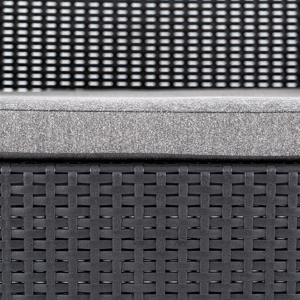 Időtálló bútor: A Grafit színű, stílusos párnákkal rendelkező kerti bútor szett könnyű, egyben tartós vázszerkezettel rendelkezik. Időjárásálló anyagai lehetővé teszik, hogy sok éven át a terasz, vagy az erkély kényelmes darabja maradjon.