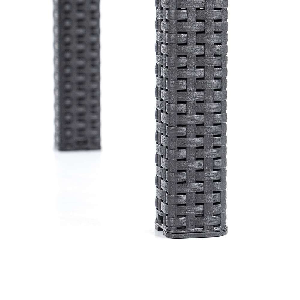 A Claire VI garnitúra rattan hatású borítást kapott, ami elegáns megjelenést kölcsönöz a kültéri térnek. Az UV-álló műanyag felület időjárásálló, így nem fakul ki a napon és jól bírja az esőt is.