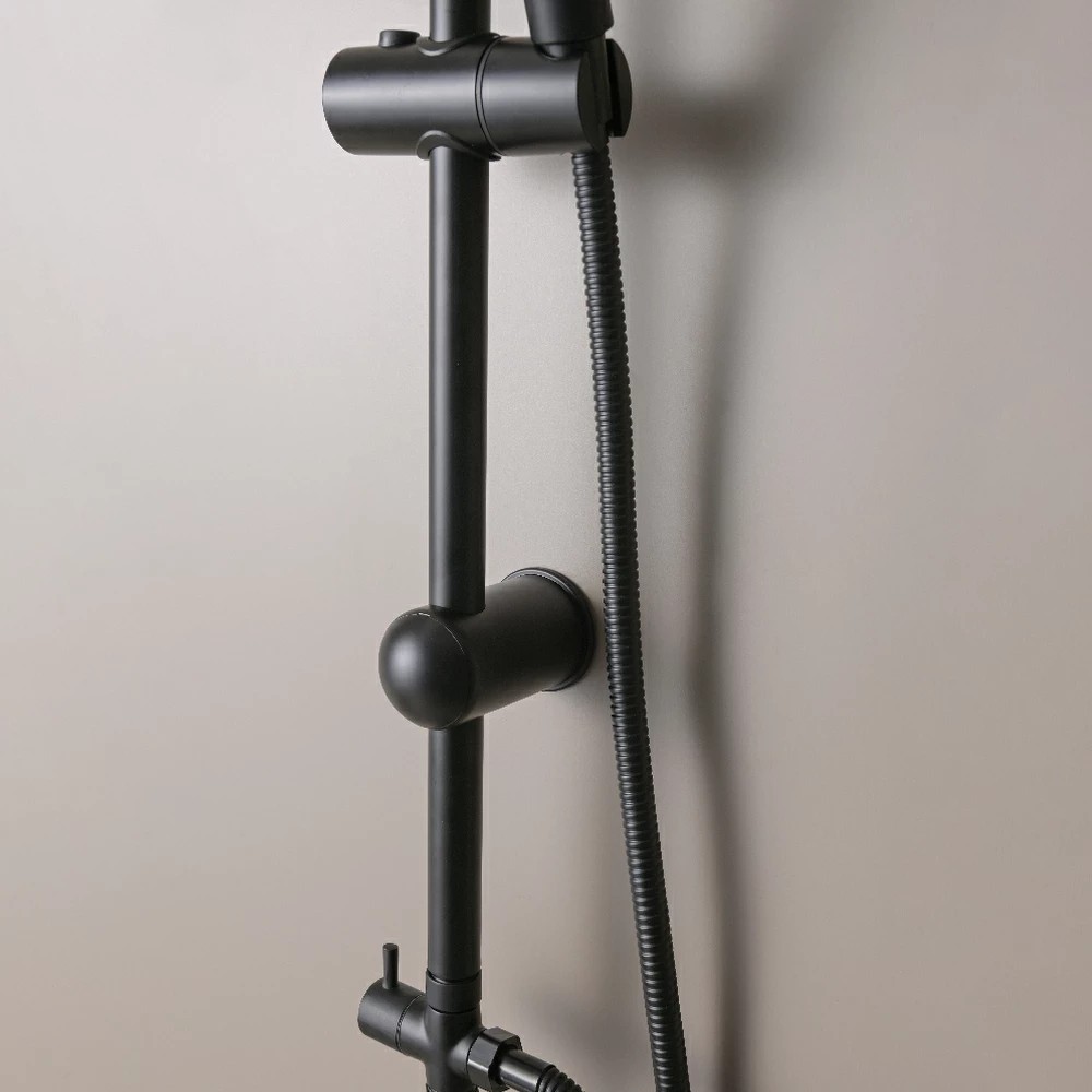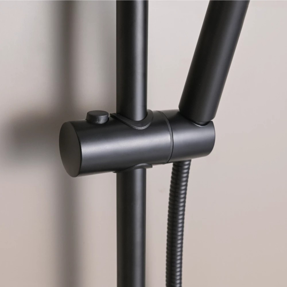 A Corina Black zuhanyszett stílusos és modern megjelenésű. Az ABS kézi zuhanyfej és esőztető minőségi anyagból készült, melynek köszönhetően sokáig élvezheti használatát. A zuhanyszett teste rozsdamentes acélból készül, kézi zuhany magassága állítható.