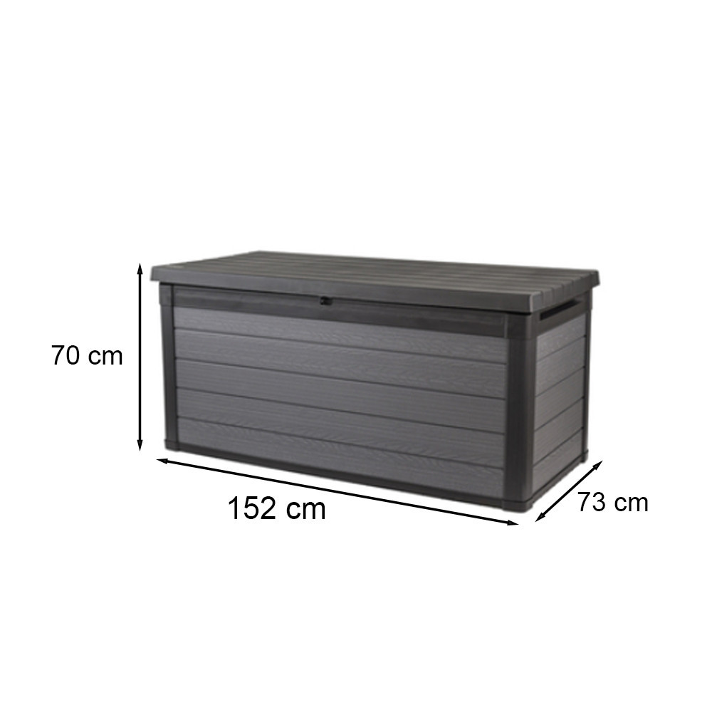 Modern tárolóeszköz a kertbe a Cortina 570L szürke műanyag kerti láda a modern kültéri tárolási megoldások legújabb generációját képviseli. Az Evotech™ kompozit anyagnak köszönhetően ez a kültéri tároló rendkívül erős és időjárásálló, valamint UV-védett, így hosszú távon megőrzi minőségét és színét.