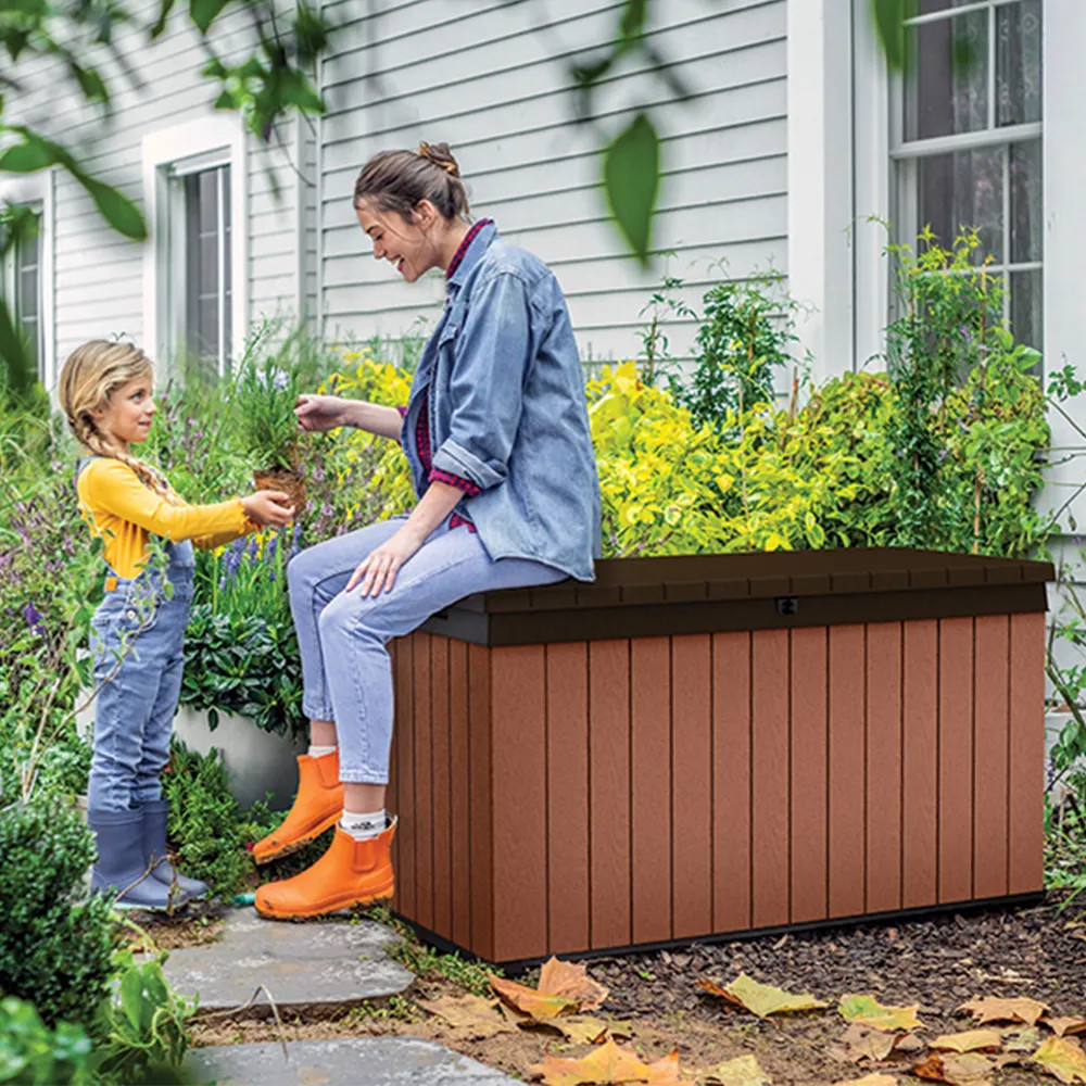 A funkcionális és tágas , 570 liter űrtartalmú kerti tárolót a neves Keter cég gyártotta, amelynek nagy tapasztalata van a műanyagból készült kerti felszerelések létrehozásában. A kerti tároló tökéletes hely a kerti székek, játékok vagy egyéb kerti felszerelések párnáinak tárolására. Noha fa kerti doboznak tűnik , ez csak egy stilisztikai eljárás, amelyet a gyártási folyamat során hajtanak végre. A Keter Darwin kerti tároló teljes egészében erős és tartós műanyagból készül. Ennek köszönhetően vízálló, ellenáll az UV sugárzásnak és környezetbarát is. A Keter termékek előállításához szükséges anyagok nagy részét újrahasznosításból nyerik.