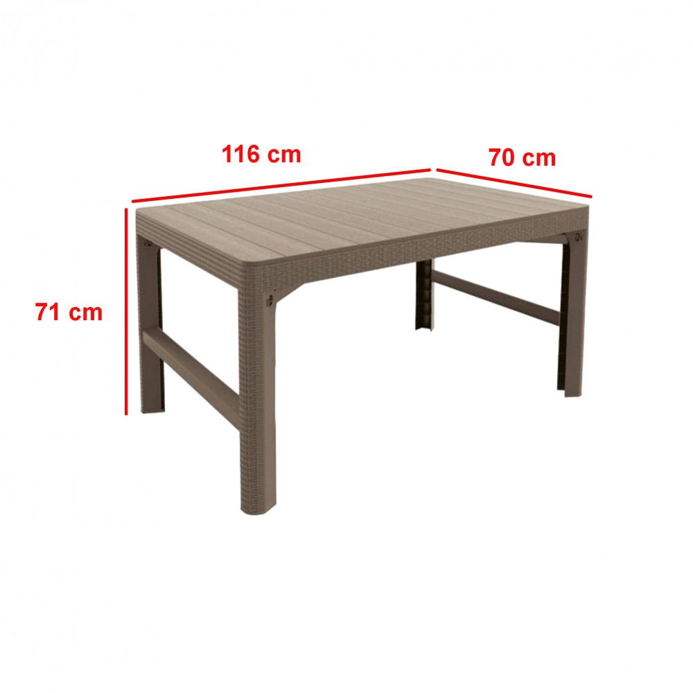 külöleges karbantartást nem igényel , könnyen tisztán tartható. Ajánlott langyosvízbe áztatott rongy segítségével áttörölni szennyeződés esetén. Egész évben a szabadban állhat, bár erős fagyok és havazás idején tanácsos fedett helyen tárolni. A Lyon asztallapja sík, amely megkönnyíti a poharak,tányérok elhelyezését. Az asztal szabadon állhat anélkül, hogy aggódnia kéne a miatt, hogy napfénynek kitéve elveszíti eredeti színét. Összecsukható lábakkal rendelkezik, ami helyet takarít meg tárolás közben.