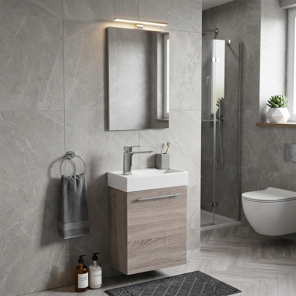 A funkcionalitás mellett természetesen a bútor megjelenésére is nagy figyelmet fordítottak. Sonoma tölgy színének és letisztult modern vonalainak köszönhetően harmóniát teremt az összes fürdőszoba hangulatában.