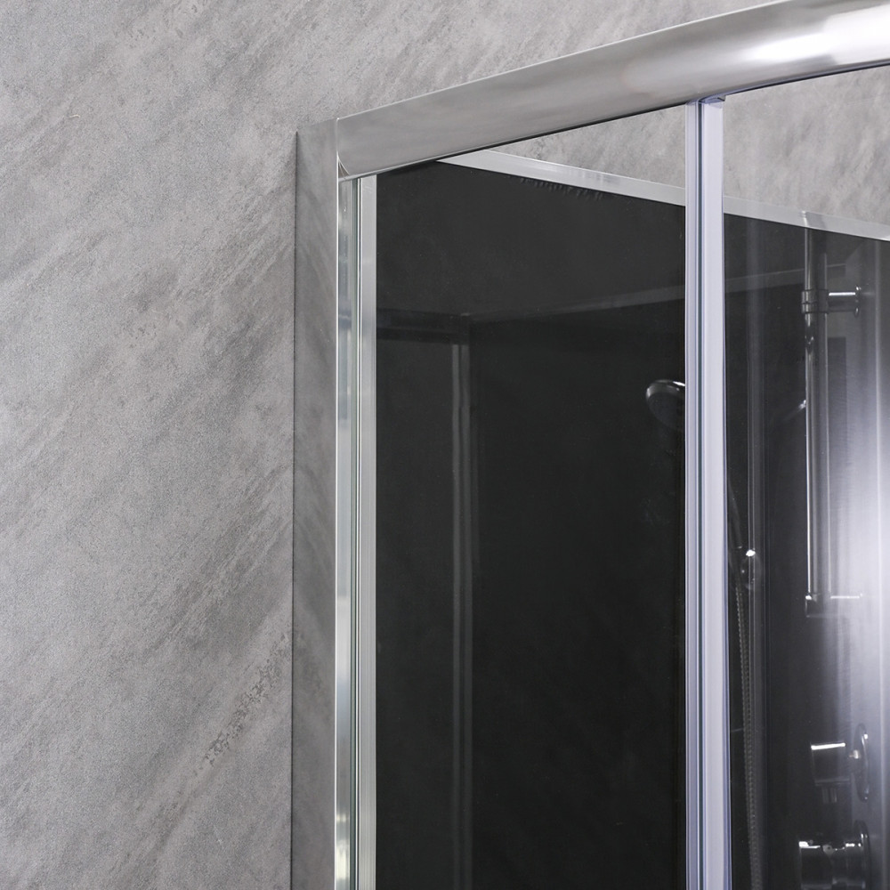 A krómozott alumínium profilok állítható fali kialakítással rendelkeznek, így a Karolino Black zuhanykabin régebbi vagy enyhén egyenetlen falú fürdőszobákban is könnyedén beállítható.
