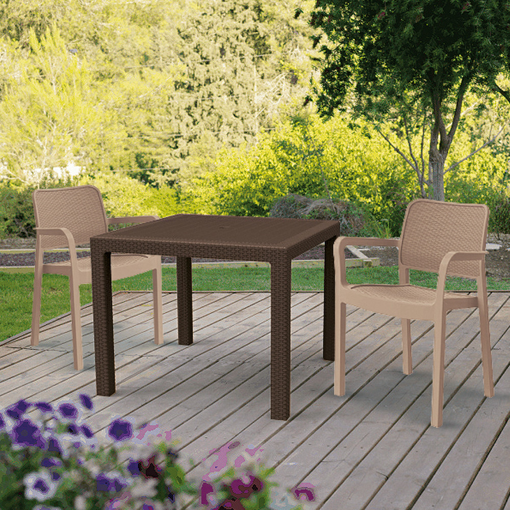 Strapabíró anyaga: UV sugárzásnak és az időjárás viszontagságainak ellenálló műanyagból készült. Az asztal ideálisan beleillik minden ház körüli térbe, ahol ideális helyet teremt a szabad levegőn való pihenéshez. Rattan fonat inspirált felülete a termék esztétikai előnyei közé sorolható.
