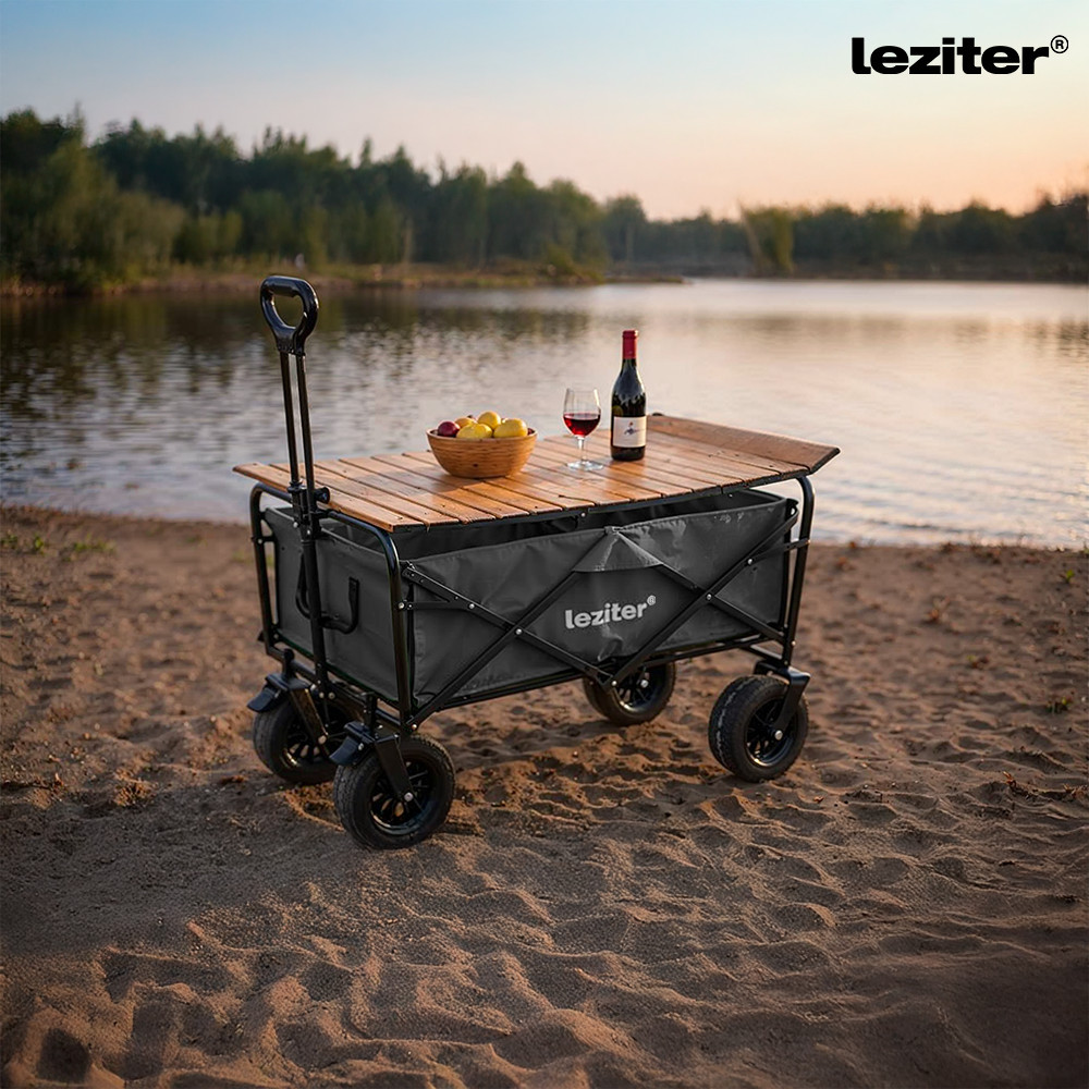 Válassza a Leziter prémium összecsukható strandkocsit beépített piknikasztallal – élvezze a szabadtéri életet teljes kényelemben, kompromisszumok nélkül!