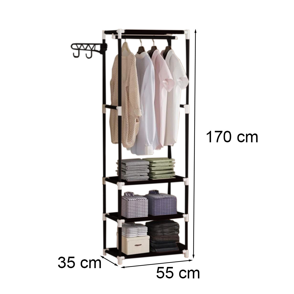 - Rend és szervezettség: Az állvány több szintjének és akasztósorának köszönhetően könnyedén rendszerezheted ruháidat, cipőidet és kiegészítőidet. Minden darabnak meglesz a saját helye, így elkerülheted a rendetlenséget.