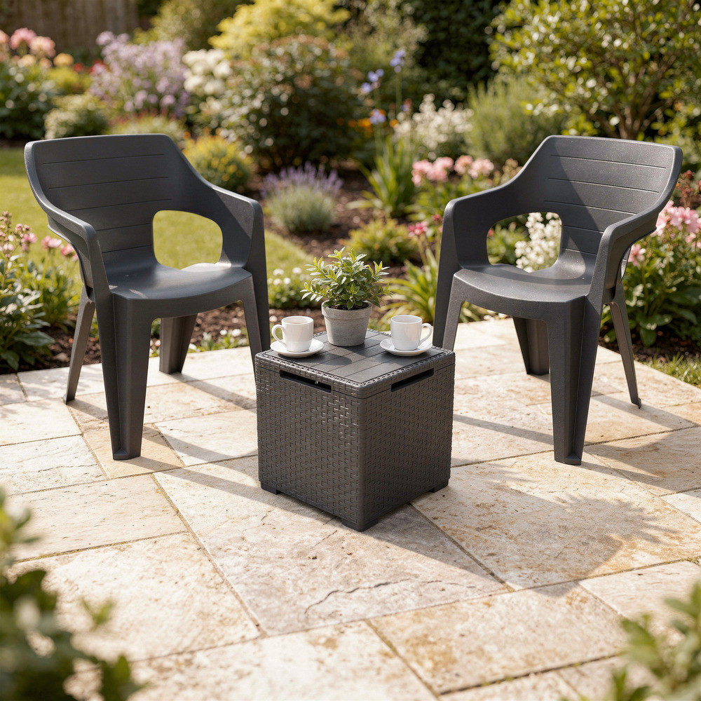 - 2 db Bilbao Lowback műanyag kartámaszos kerti szék grafit – 57 x 57 x 79 cm