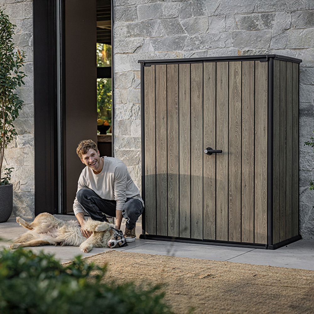 A Signature 1400L kerti tároló tökéletes megoldás, ha egy stílusos, tartós és biztonságos kültéri tárolóra van szükség. Az innovatív DECoCOAT™ technológiának köszönhetően természetes fa hatást kelt, anélkül hogy fakulna vagy karbantartást igényelne.