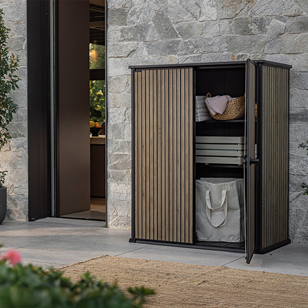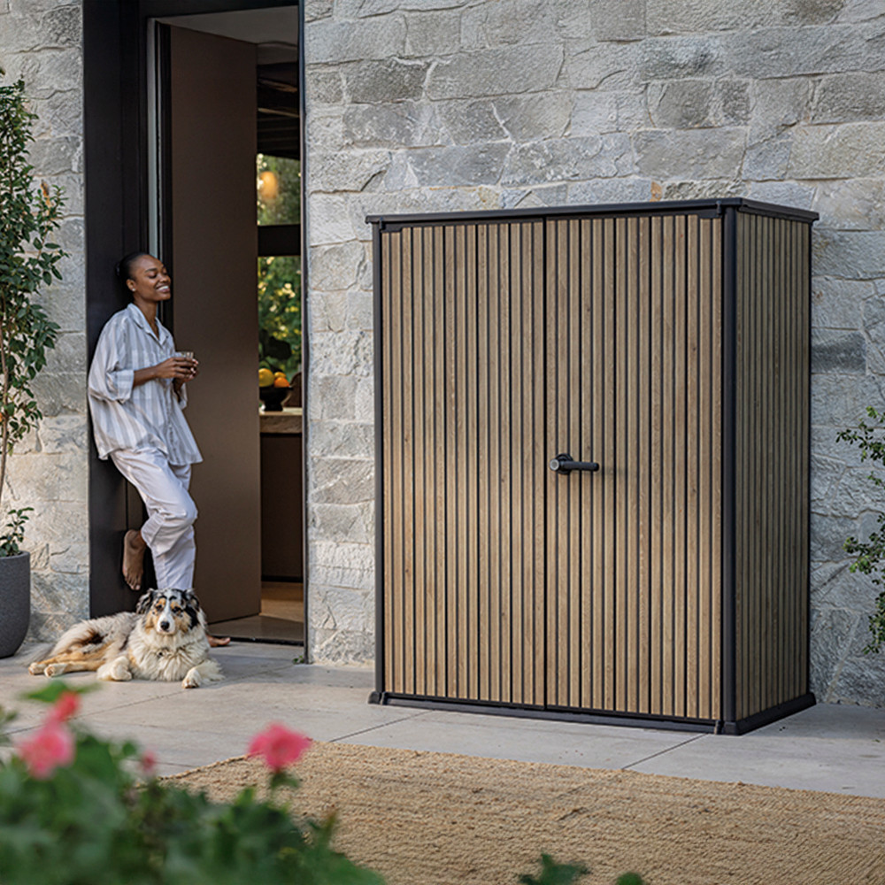 A Signature 1400L nemcsak tartós és ellenálló, hanem a DECoCOAT™ technológia révén természetes fa hatású megjelenést kapott. A kialakítása pedig biztosítja, hogy a tárolt eszközök védve legyenek az időjárás viszontagságaitól.