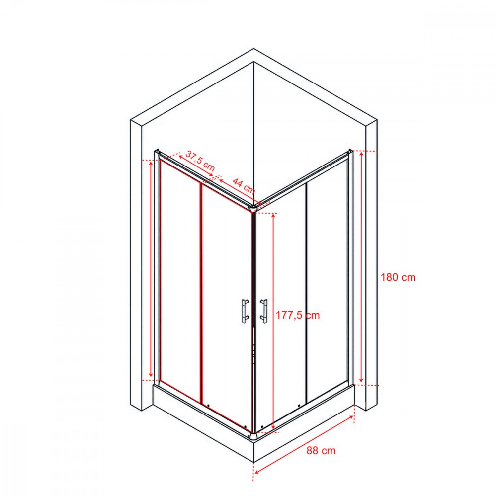 - Típus: szögletes zuhanykabin zuhanytálca nélkül