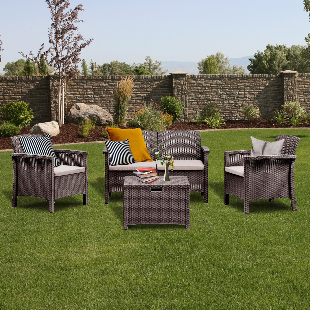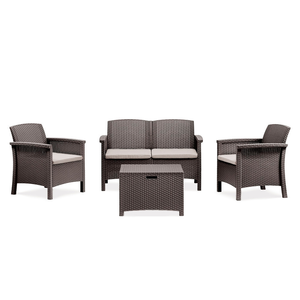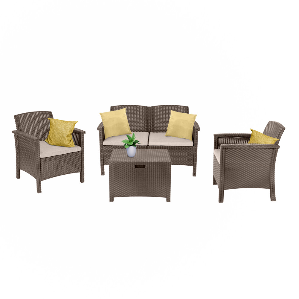 A barna színben, stílusos párnák kíséretében kapható kerti bútor szett könnyű, egyben tartós vázszerkezettel büszkélkedik, ezáltal egyszerűen mozgatható, mégis stabil bútorról beszélünk. Karbantartásmentes, ami annyit tesz, hogy nincs szükség állandó bútorápolásra, letakarásra, időjárástól való megóvásra. Könnyen tisztítható minden egyes eleme, így pillanatok alatt makulátlanná varázsolható az összkép.