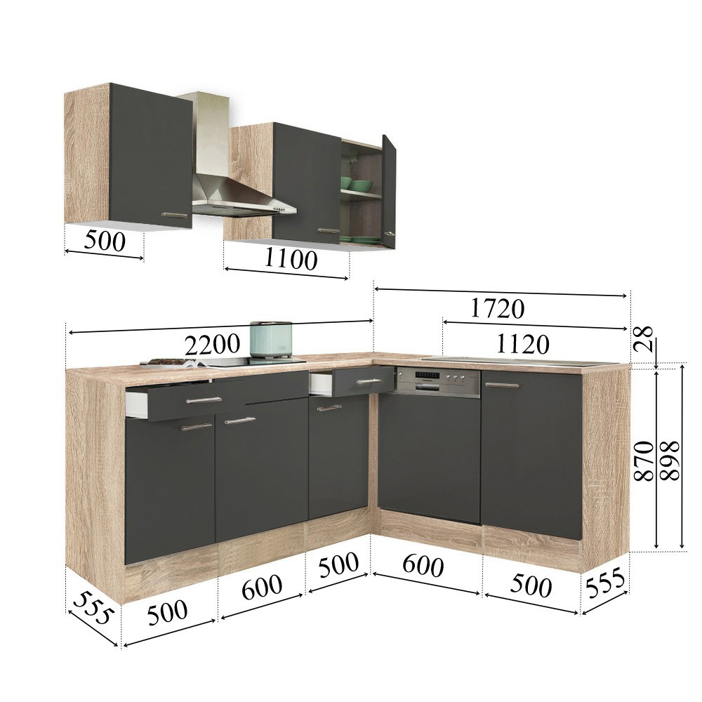 Yorki 220 sarok konyhablokk sonoma tölgy korpusz, selyemfényű antracit fronttal. A tökéletes konyha megteremtője!