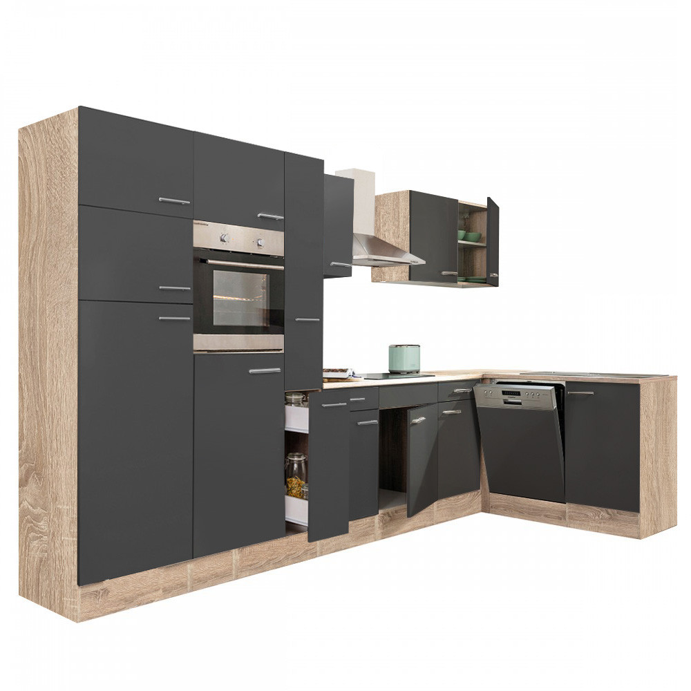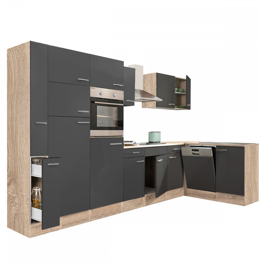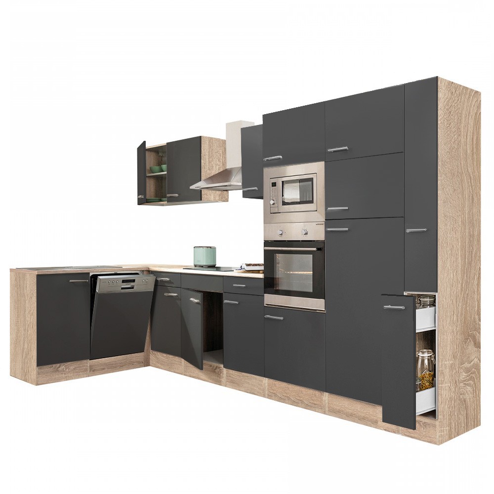 Yorki 370 sarok konyhablokk sonoma tölgy korpusz, selyemfényű antracit fronttal. A tökéletes konyha megteremtője!